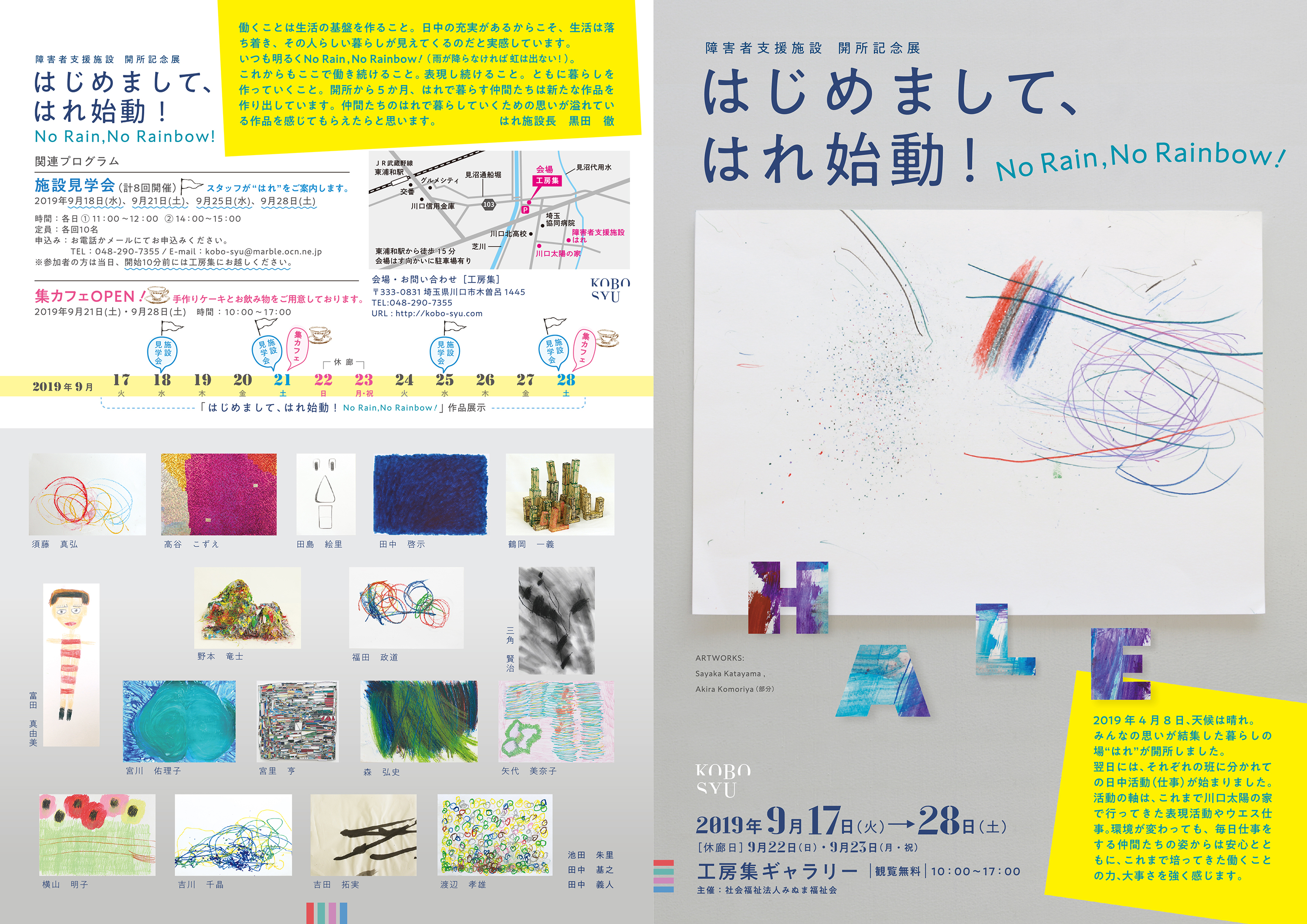 2019年4月に新たな入所施設「はれ」を開所したことを記念して、「はれ」の仲間の作品が一堂に並ぶ作品展を工房集ギャラリーにて開催いたします!