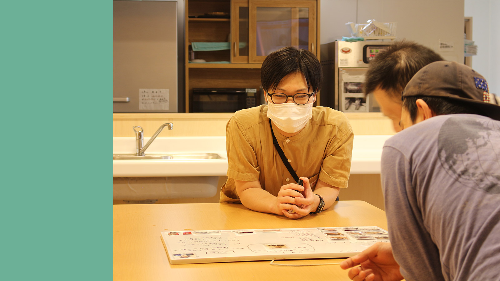 私がここに来てすぐの頃、先輩にとても良くしていただきました。仕事が終わった後、仲間について熱く語り合ったのは良い思い出ですが、最近はこういった時間がとれずコミュニケーション不足を感じることも。福祉の成果は目に見えることだけではありませんので、他の職員と仲間のことを共有する時間はとても貴重だと思っています。
