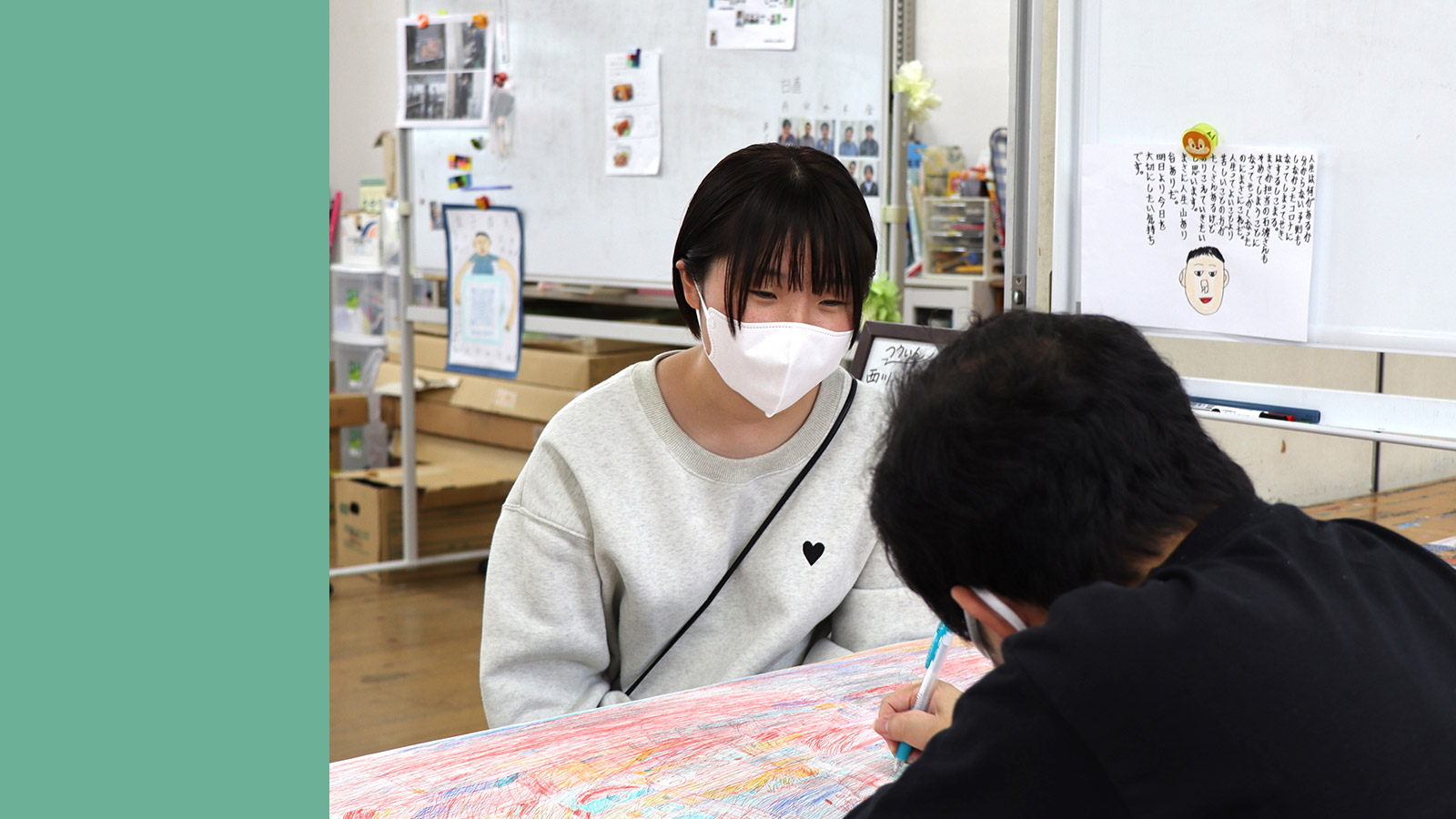みぬま福祉会では、支援する側、される側を超えて、ともに生きる仲間として一人ひとりに関わることを大切にしています。重度重複障害のある方とはこれまで接することがなく、コミュニケーションできることがとても嬉しく、仲間も歓迎してくれて自然に溶け込むことができました。